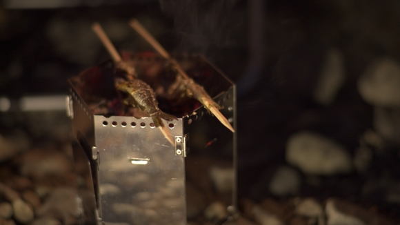 3、串焼き 4、網を置いてBBQは 上の写真のように組み立てます。