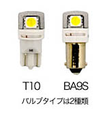 バルブタイプは、T10とBA9Sの2種類をラインナップ。装着箇所にあわせて、幅広くご利用頂けます。