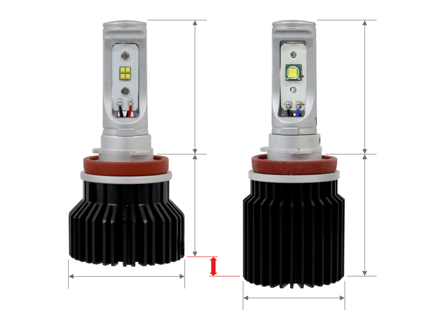 ※本製品は、純正バルブと形状が異なる為、一部の車両で装着できない場合があります。 寸法図をご確認頂き、ノキズなどの測定器具を使用し、装着スペースを確保できるか、ご確認の上お求めください。装着に必要なスペースとして、本製品をフォグランプに取り付けヒートシンクと干渉物までの距離を5ミリ以上確保して下さい。