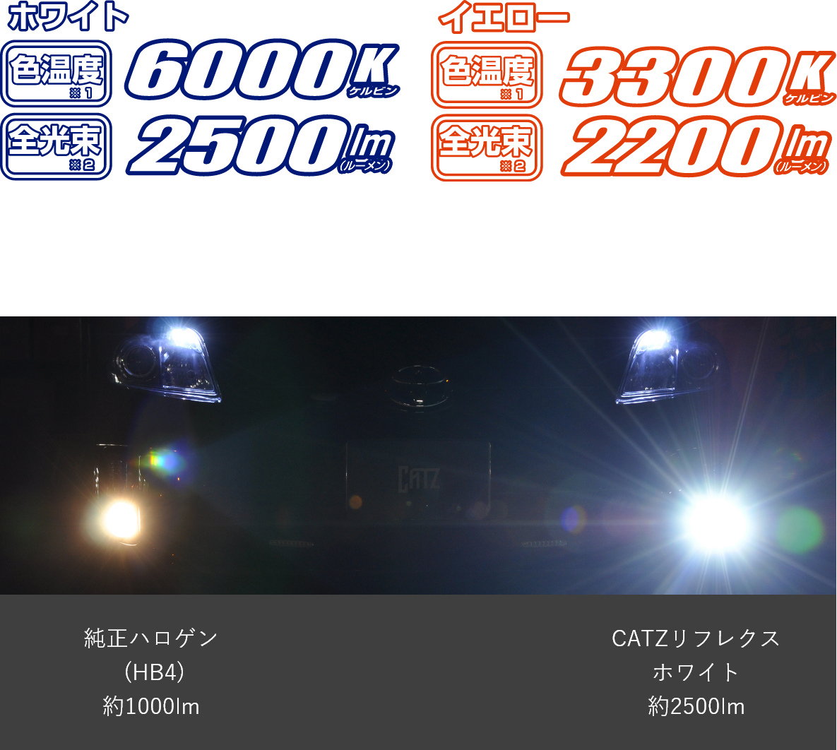 | 全光束 | 2500lm(ホワイト)/2200lm(イエロー) |
