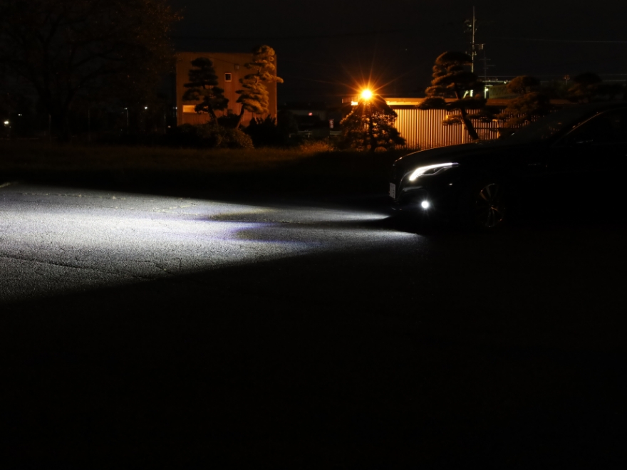 ●夜間のドライ路面では、明るく・ファッショナブルな光を発するホワイト光