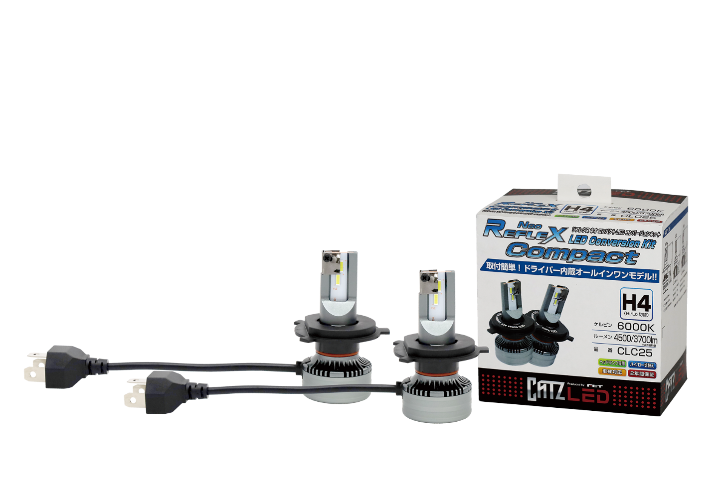 ドライバーユニットがバルブ本体に組み込まれており、後方スペースの狭い車両にも簡単に取り付けることが可能。さらにムラのない配光と色温度6000Kの見やすい白色光で、高い視認性(見やすさ)を可能として、ヘッドライト(フロントマスク)もドレスアップ!さらに、ヘッドライトごとに最適なバルブ角度調整が可能で、キレのある配光を作り出しクラス最高水準の明るさ4500lm(ルーメン/左右合計値 ※H4タイプロービームは3700lm )を実現する事で、高い視認性が夜間走行に安心と安全を提供します。