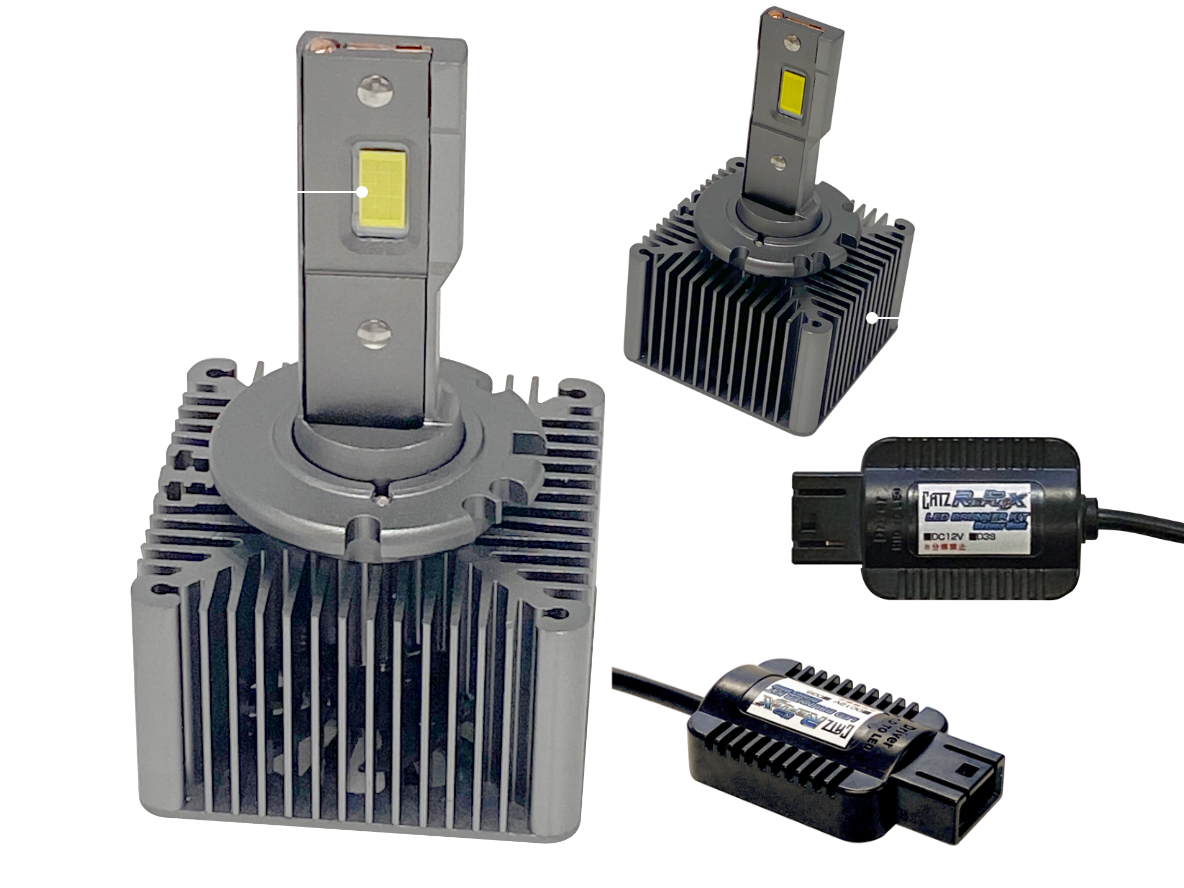 ヘッドライトユニット内部に全てのパーツが収まり、純正HIDバラストのイグナイタソケットに接続することで電源をLEDドライバーに直接供給簡単にHIDからLEDへ変更することが可能です。