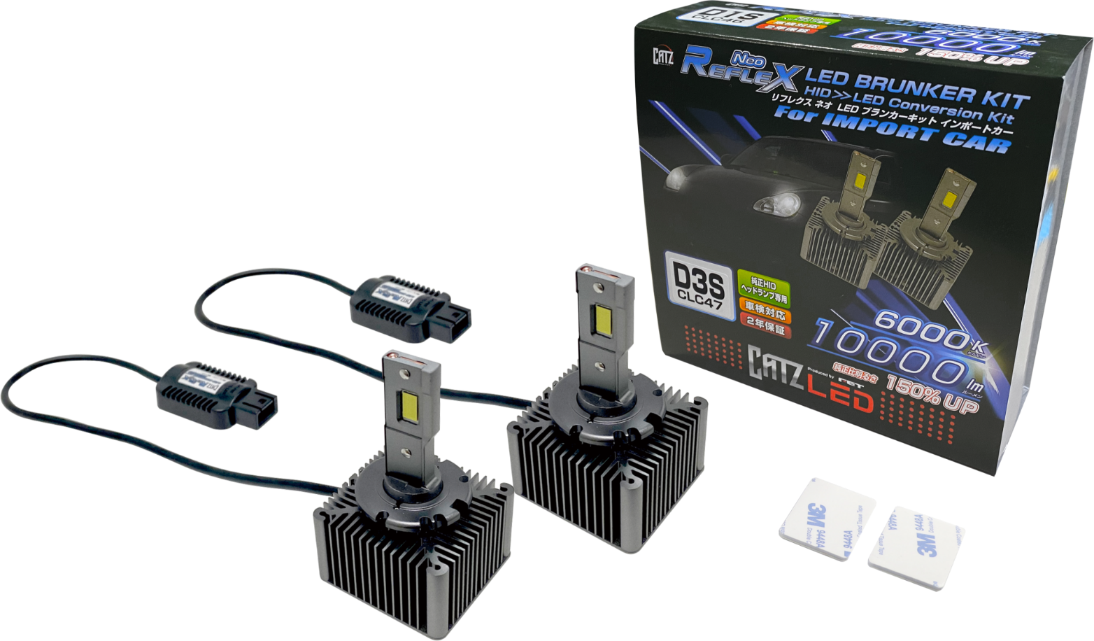 輸入車用D1S、D3S タイプのHIDのヘッドライトを、クラス最高の明るさ10000lm(ルーメン※左右合計値)の最新LEDの光にコンバージョンできる、CATZ LED 「REFLEX Neo HID>>LED BRUNKER KIT」(リフレクス ネオ HID>>LEDブランカーキット)For IMPORT CARが登場。