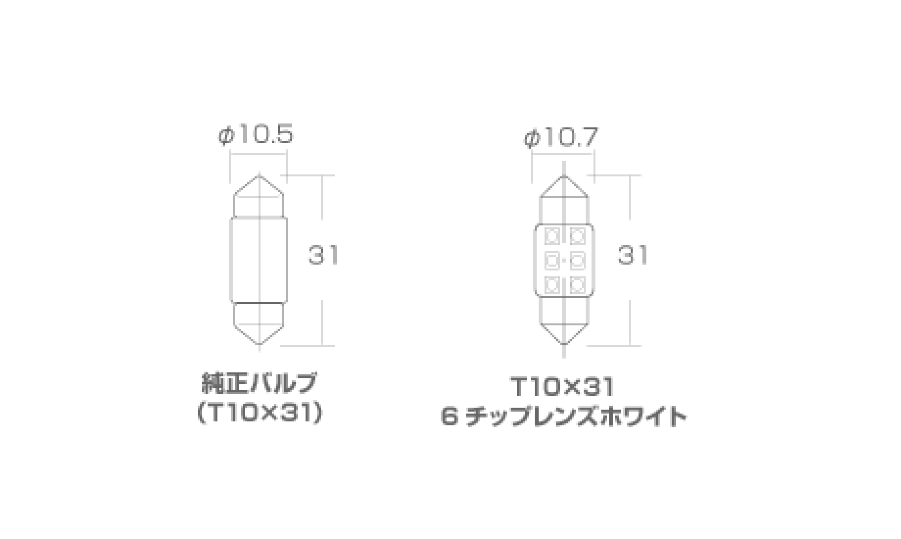 ※「T10×31 6チップ レンズホワイト」には極性(+ と ー)があります。