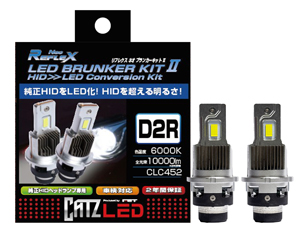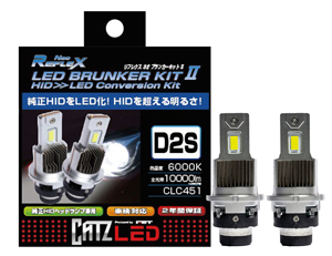 純正HIDバルブを高輝度LEDバルブに交換可能で、HIDよりも明るく瞬時に100%の明るさとなり夜間走行の路面を確実に照射し見易さや安全性が向上。