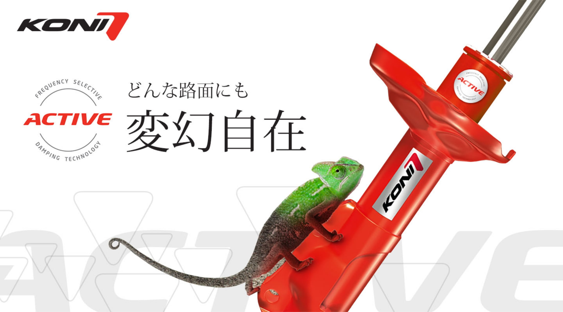 カメレオンが環境に適応するように、KONI Special ACTIVE(コニ スペシャル アクティブ)は、様々な路面状況やドライビングスタイルに応じてサスペンションの動きを瞬時に最適化します。