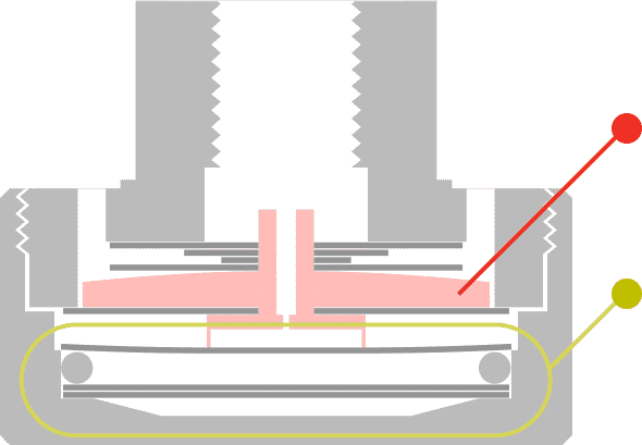 →油圧が高くなるにつれ、オイル室が膨らみ、バルブが押し上げられる→オイル通過量が減る