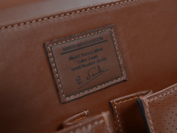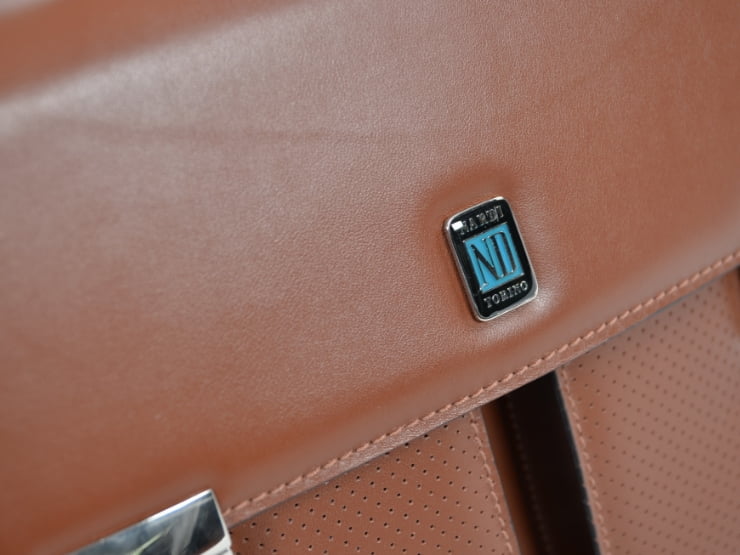 また、Kallista ステアリングをモチーフにデザインされたウッドのグリップハンドルを採用。スムーズレザーとパンチングレザーとの組み合わせにより、スタイリッシュな感度も高めています。ケースのフロントに映える尾錠もイタリアの職人が手がけた美しい尾錠を使用しています。厳しい品質検査を通った製品のみNDのメタルエンブレムが与えられています。