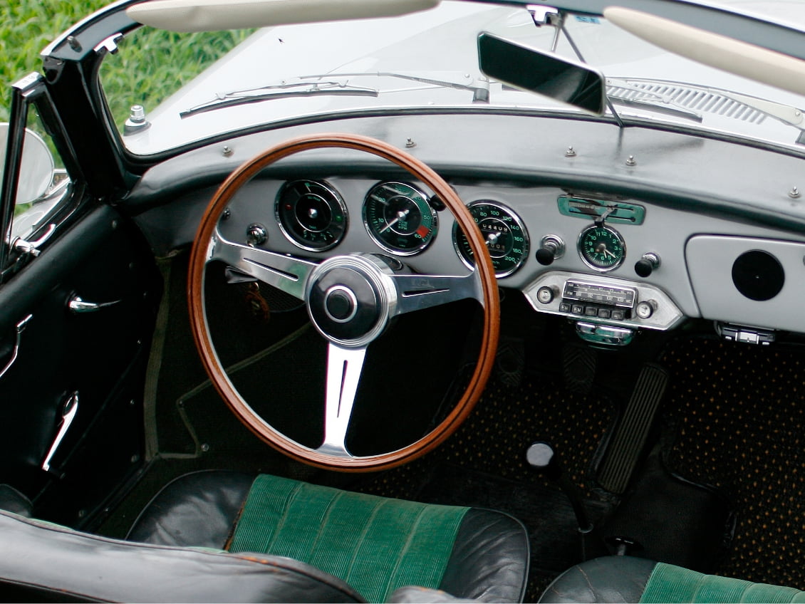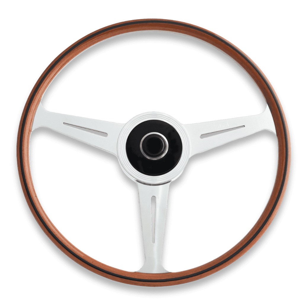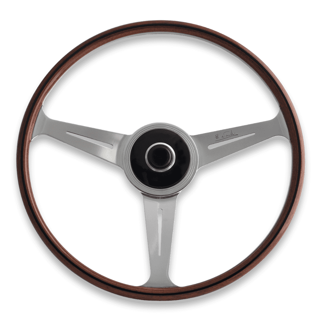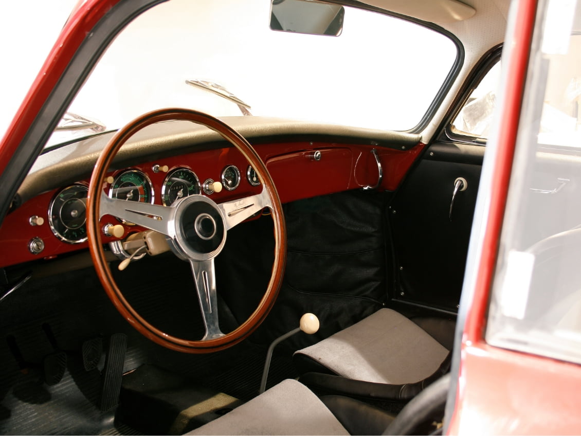 細身グリップで、大径のマホガニーウッドのステアリングは、機能的で無駄のないシャープなデザインのPorsche 356のメーターパネルとマッチします。