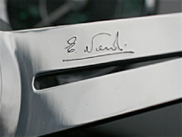 グリップ部はマホガニーウッドでディッシュスポークにスロットを施し、ハブと一体構造のダブルコンタクトホーンボタン仕様