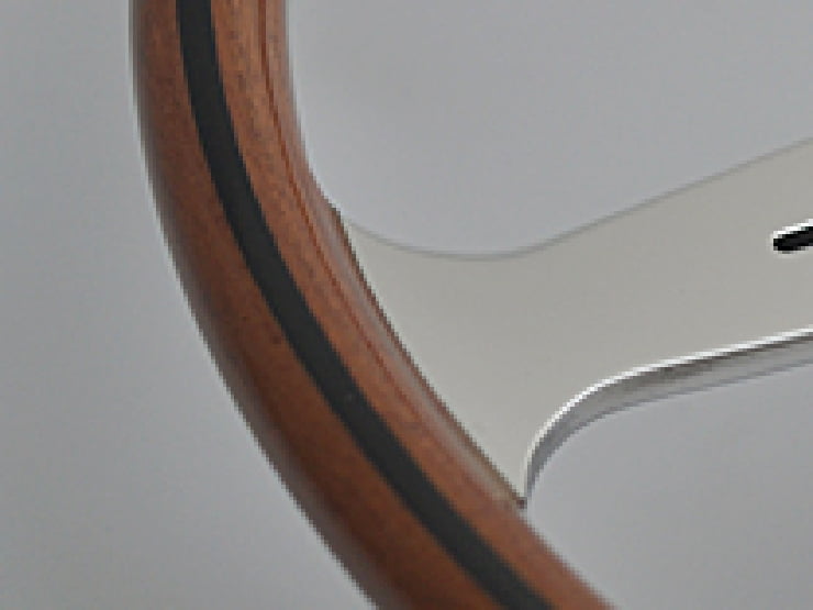 グリップ部はマホガニーウッドでフラットスポークにスロットを施し、ハブと一体構造のダブルコンタクトホーンボタン仕様