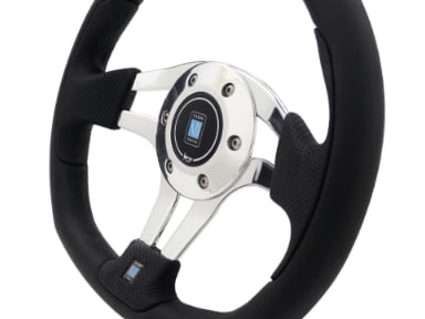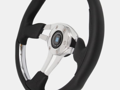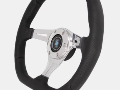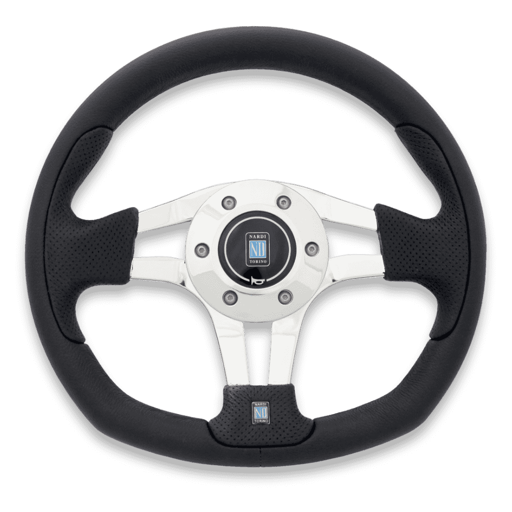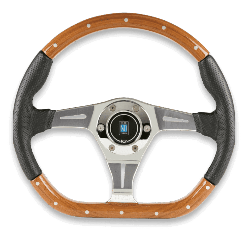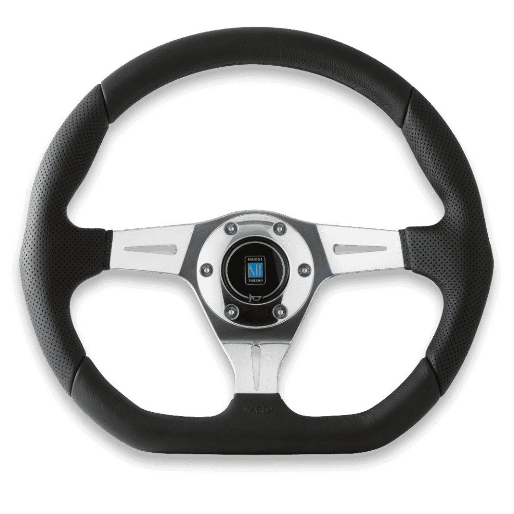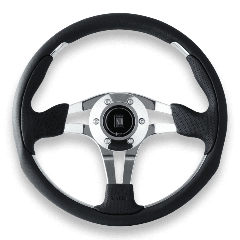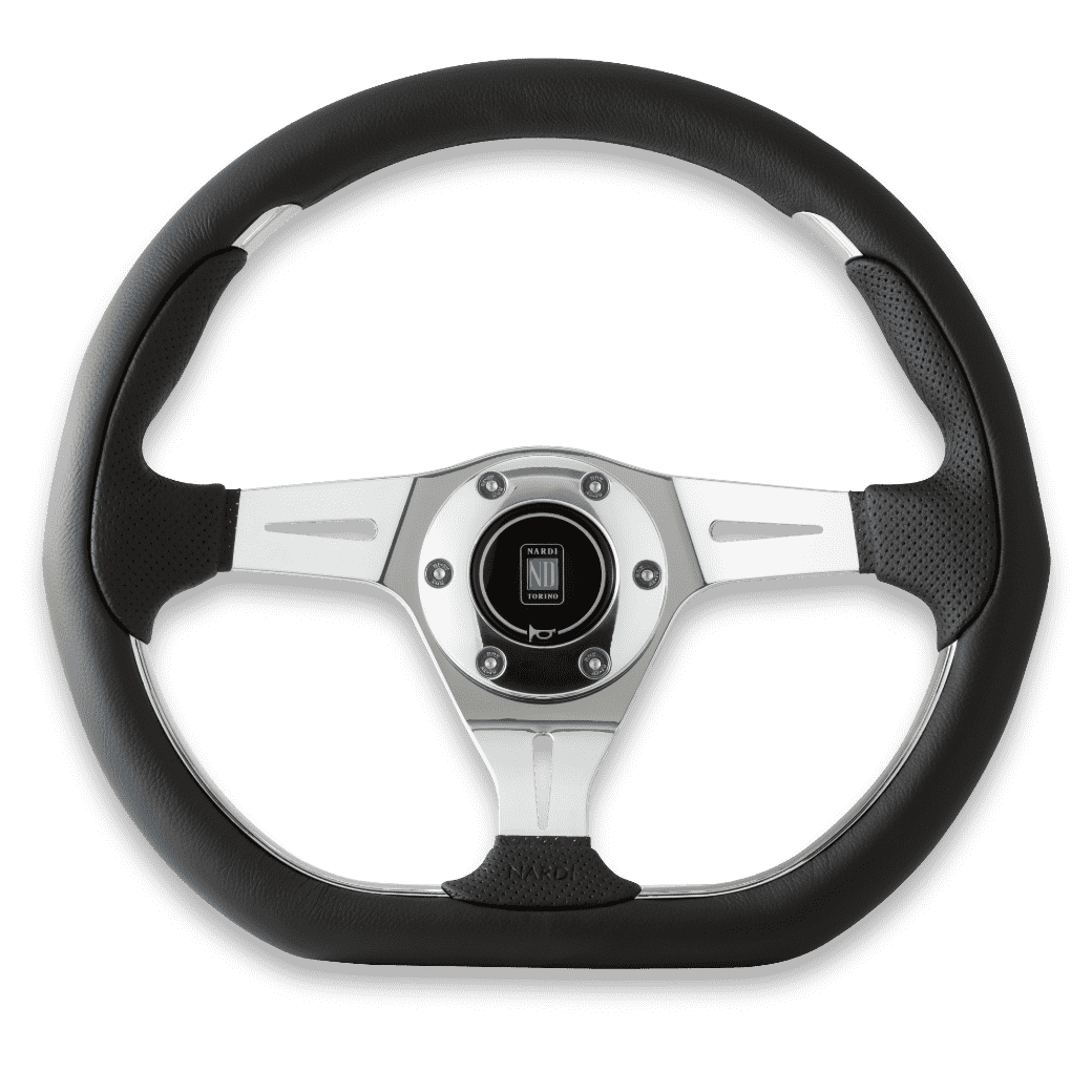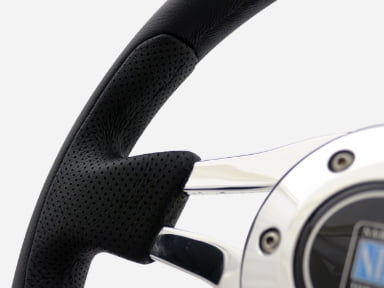 NARDIが新時代に向けて発進するあたらしい造形。クイックな操作を可能にする300mm直径のDシェイプステアリング。センタースポークを2分割した大胆且つ美しいスポークとパンチングレザーを部分的に配置。さらにNARDIのメタルエンブレムをグリップ部に配置したアグレッシブとエレガントさを両立したモデルです。