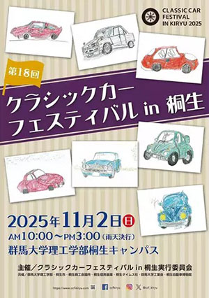 「第18回 クラシックカーフェスティバルin桐生」開催のご案内2025年11月2日(日)群馬大学理工学部 桐生キャンパス(群馬県)(終了しました)