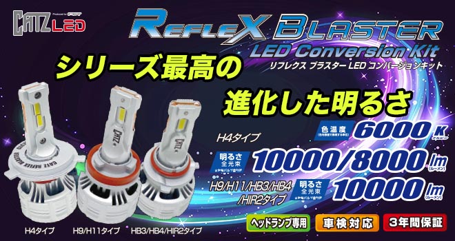 LEDの美しい白い輝きと最高水準の明るさ、ヘッドライトに最適な配光を実現し人気のCATZ LEDヘッドライト コンバージョンキット リフレクス ブラスター「REFLEX BLASTER」が新登場。