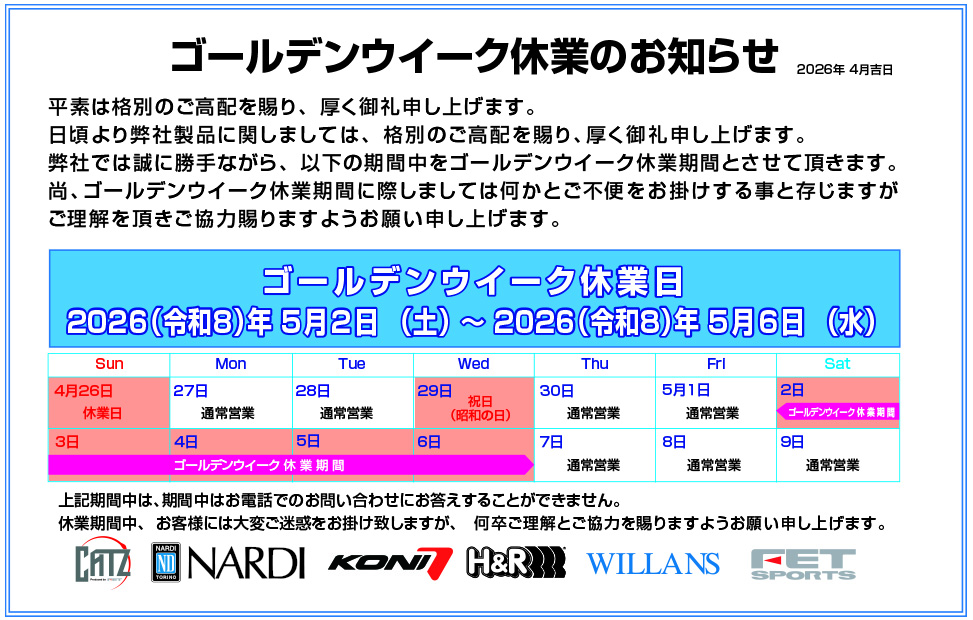 休業期間中、お客様には大変ご迷惑をお掛け致しますが、何卒ご理解とご協力を賜りますようお願い申し上げます。