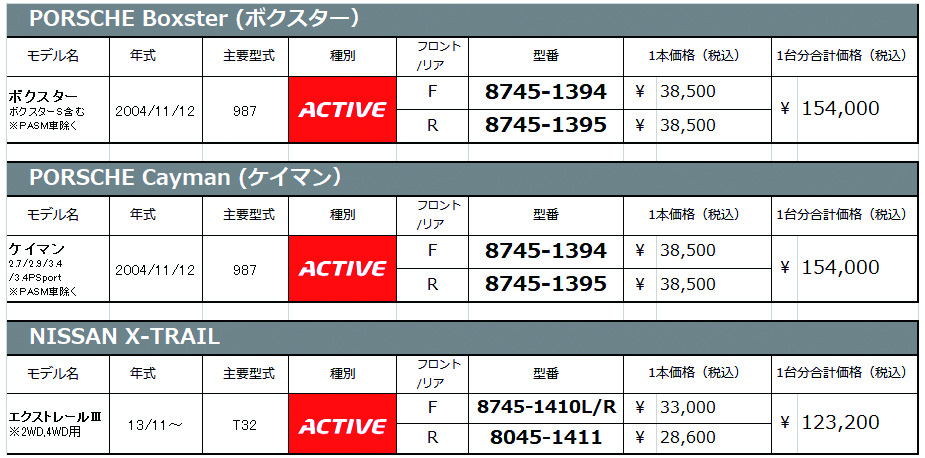 PORSCHE Cayman(987)やBoxter(987)、ニッサン X-TRAILにSpecial ACTIVEが追加されました。