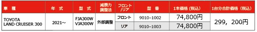 KONI HEAVY TRACK RAIDの適応にトヨタランドクルーザー300用が追加されました。